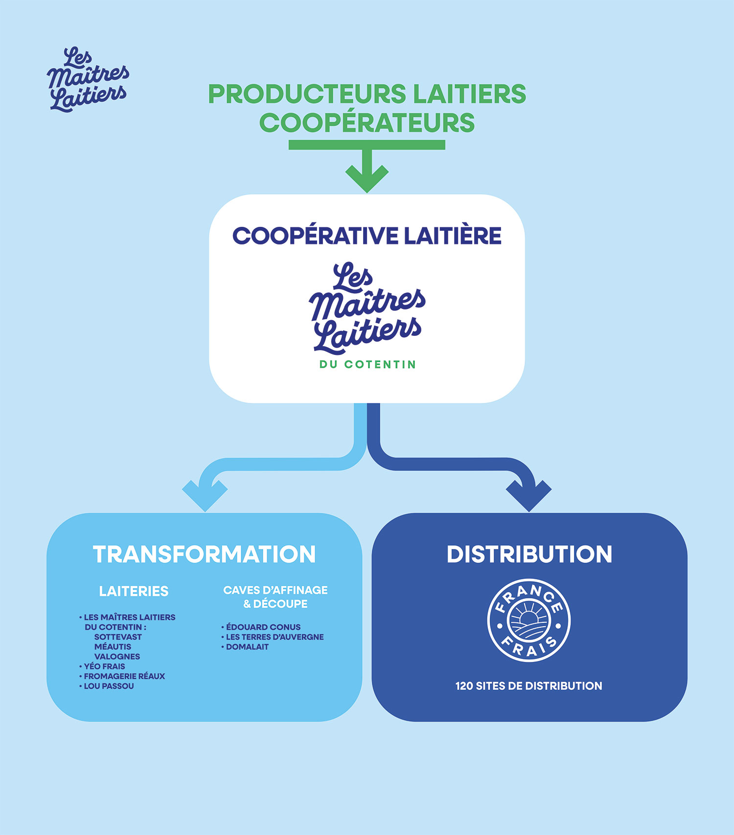 Notre groupe a été fondé par la coopérative normande et indépendante, Les Maîtres Laitiers du Cotentin, qui appartient à ses producteurs coopérateurs. Notre objectif est d’assurer une juste rémunération à nos producteurs coopérateurs afin de garantir la pérennité de leurs activités et d’assurer leur transmission aux générations futures.